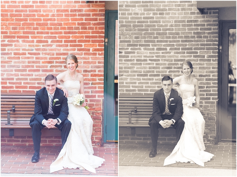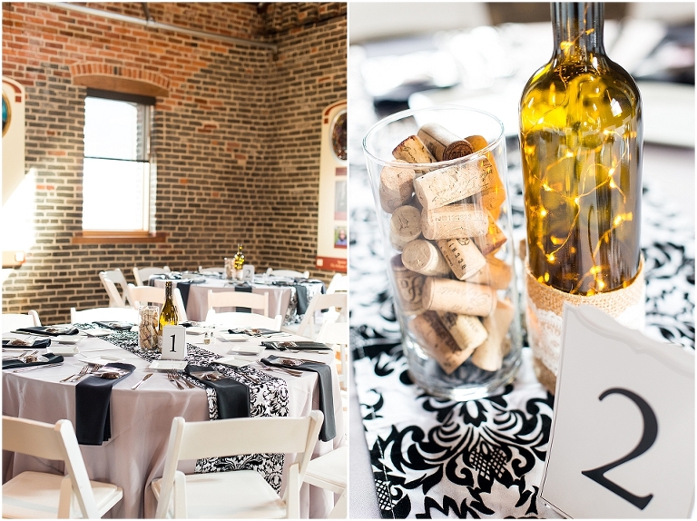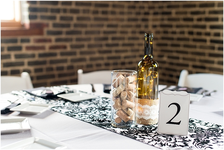 In Courtney’s own words, she’s simply-classic and he’s extremely modern. She’s a financial institutions auditor and he’s an architect. A waterfront building with exposed ceiling beams and a mix of brick and cinder block. A simple white and pink cake with modern edges. Wine bottles filled with strings of lights, wrapped in burlap and lace, set atop black and white baroque table runners and black cloth napkins. I don’t think Courtney and Sean could have found a more perfect balance for their wedding day. It was absolutely beautiful from beginning to end and I cannot even begin to tell you how much fun I had with these two. I said it in their engagement session post and I’ll say it again…..they are such a pleasure to be around and have an absolutely wonderful way of bringing you into their world and making you a friend. I’ll admit, I’m usually ready to hop into my car and slip on my Old Navy flip flops for my drive home and be done working a few hours into a reception (please don’t take offense to this my super awesome Brides and Grooms….I love you all but I’m an old lady and my feet and back hate me by that point!). At Courtney and Sean’s reception….umm…..I kind of didn’t want to leave!!! Everything was so much fun and so full of joy and I genuinely didn’t want to miss out on it all!! But alas, my aching feet convinced me to go. I’m sure that Courtney and Sean had the time of their lives dancing the rest of the night away with their family and friends and they are two people that truly deserved all the happiness and love that surrounded them that day.