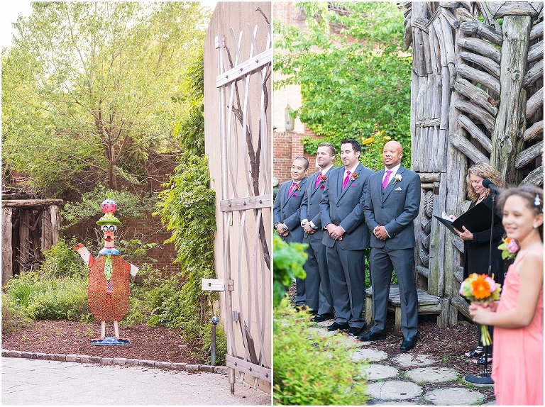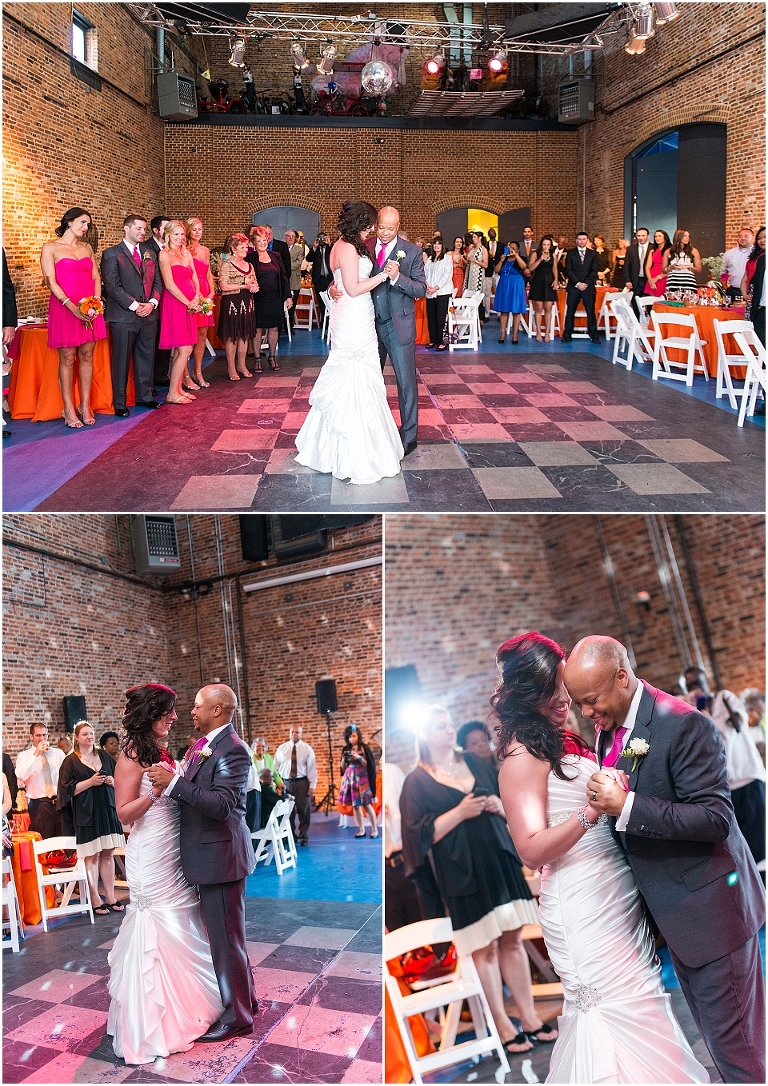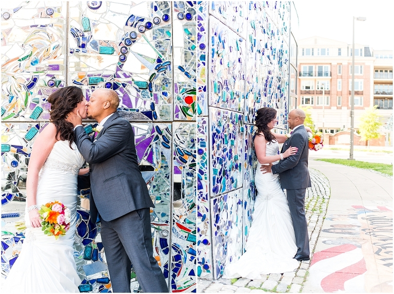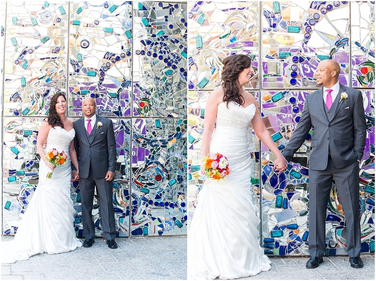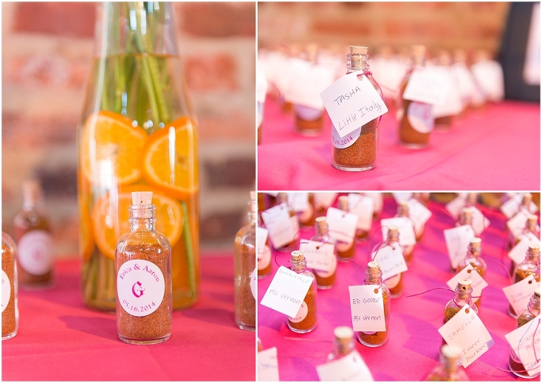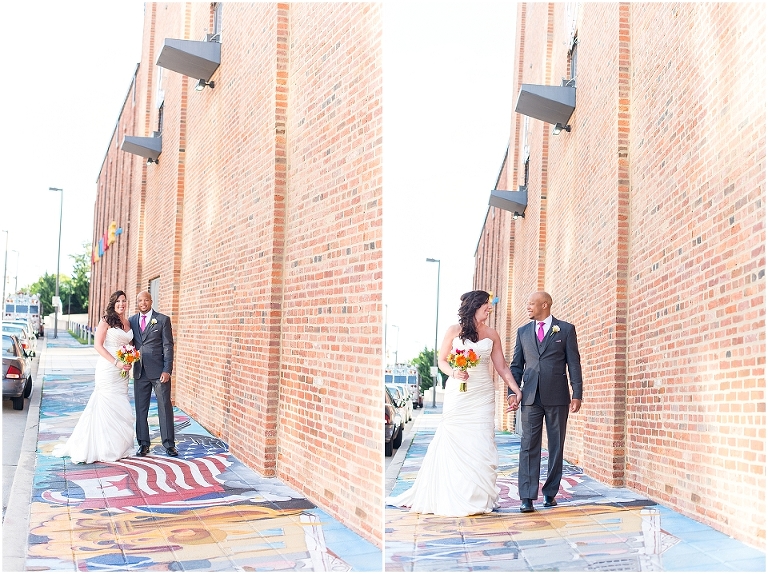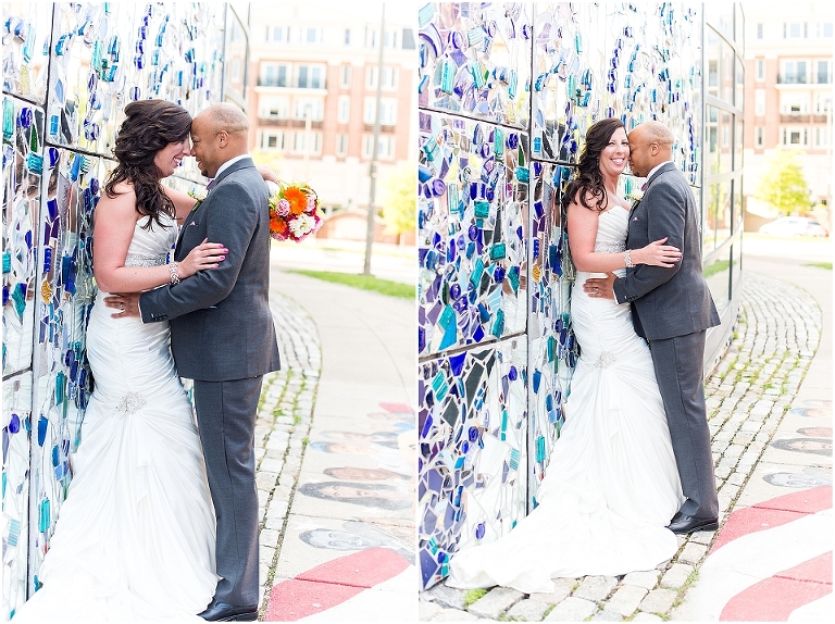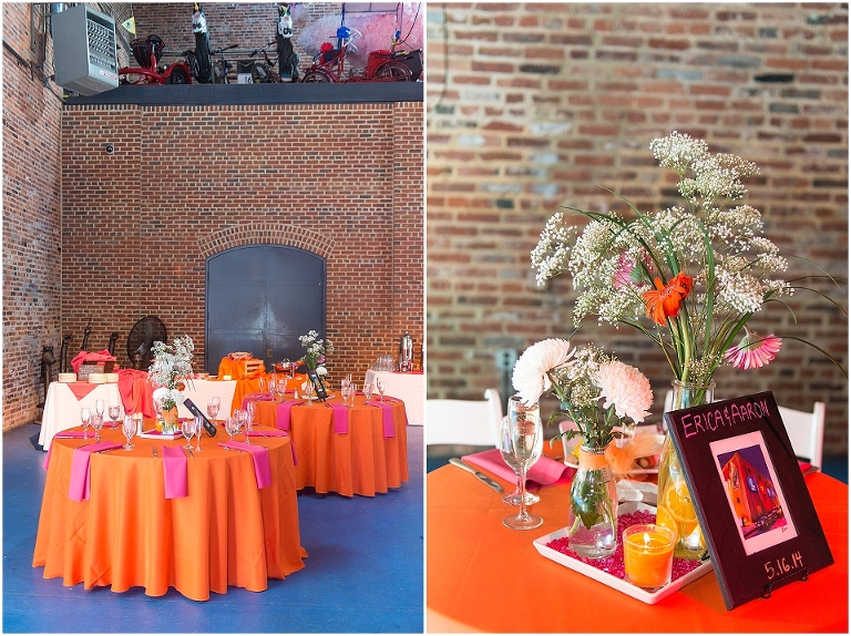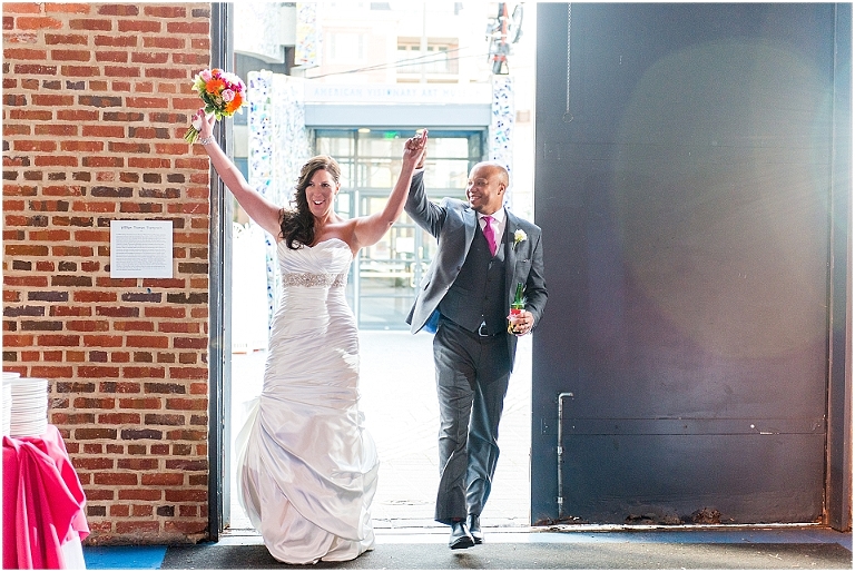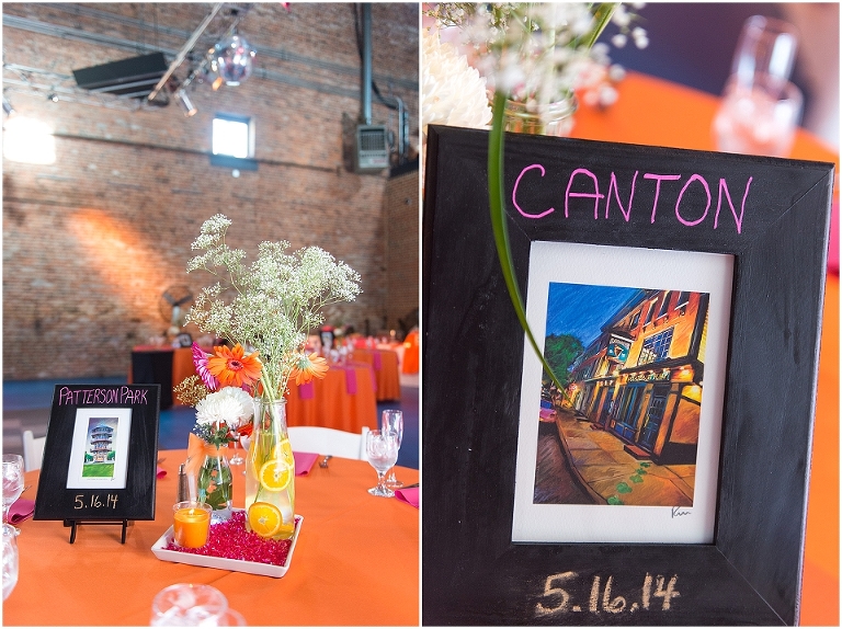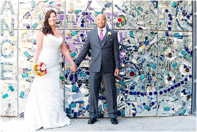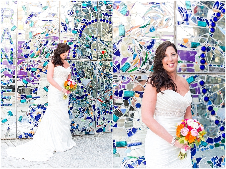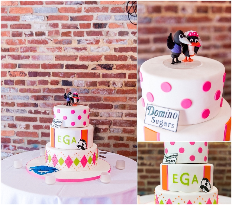 A Baltimore themed wedding at the American Visionary Art Museum?? Yes, please! Erica and Aaron have a love for Baltimore and all things sports….they even have season tickets to Ravens games and are frequently found cheering on the Orioles. So it only made sense to find one of the best venues in Baltimore, decorate it with photos of neighborhoods around Baltimore, give away little jars of Old Bay spice to all your guests, and have one awesome Baltimore themed cake made by Charm City Cakes topped off with a groom Raven and bride Oriole! The entire wedding was bright, fun, and colorful…..exactly how I think Erica and Aaron had hoped. It was an honor to be witness to how much fun Erica and Aaron have with each other…..he’s a goof that likes to come up with crazy games and she loves to play along. What other couple is so cute that they find a Smurf figurine one day and it turns into a couple year long game of hiding the Smurf for the other person in random places for them to find?…..the crisper drawer in the refrigerator, in their luggage, anywhere….and the Smurf even made an appearance on their wedding day. You’ll see that soon 😉