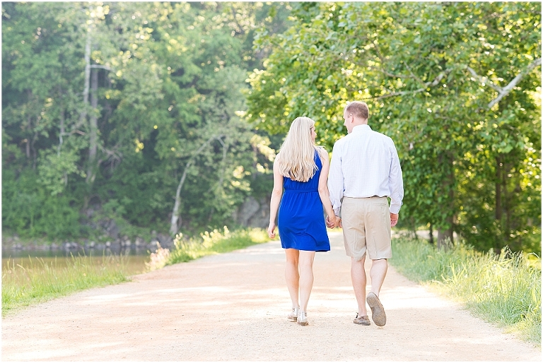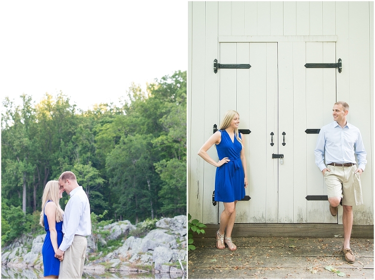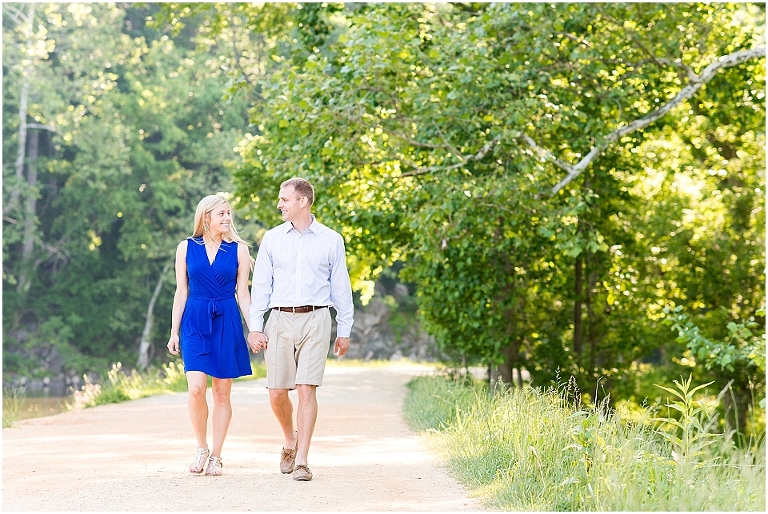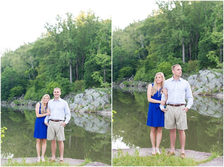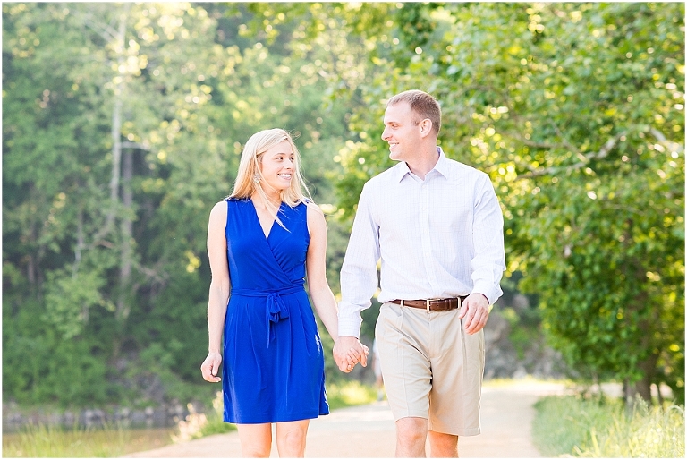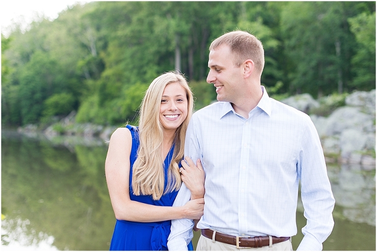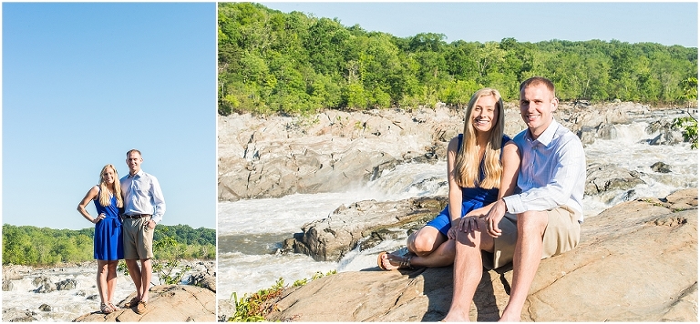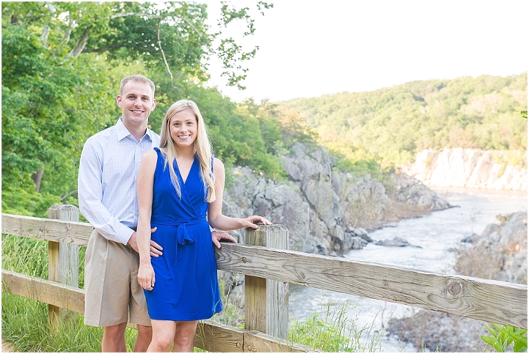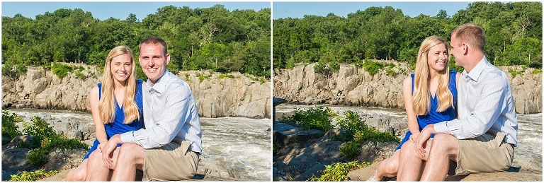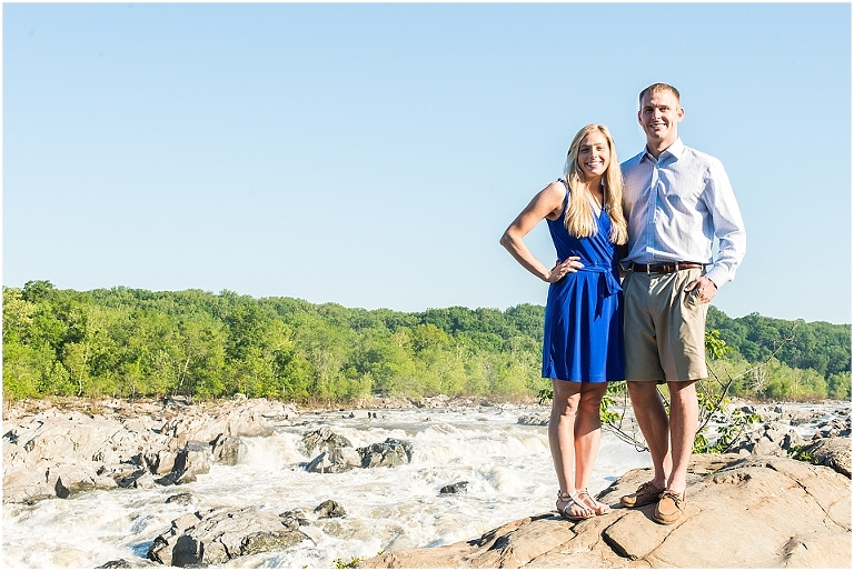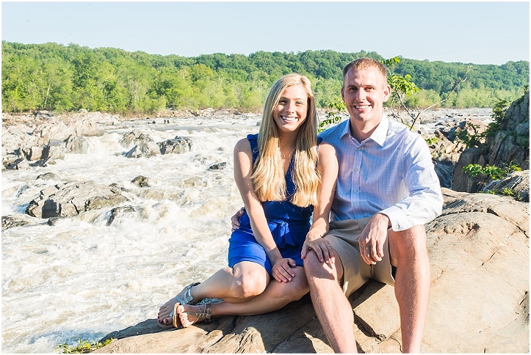 A beautiful wintertime Annapolis wedding is in store for these two sweethearts in a little less than 6 months, but we took advantage of an equally beautiful summer day to do a sunrise engagement session at Great Falls last month. I love when I arrive to sessions and the couple is super pumped for it….even at 6:30 in the morning! 🙂 Jess and Dan were excited to have me photograph them and when I asked them very first thing to climb up on some rocks they jumped right on it and were smiling the whole time. I can’t ask for better people to have in front of my camera than that. It really makes my day and lets me know that they love my photos so they trust me and my vision and whatever crazy stuff I may ask them to do….even when the bride-to-be is wearing cute sandals and a dress 🙂 And is even looking forward to walking a mile and a half to get to the falls and then a mile and a half back. Again people….in cute sandals and a dress 🙂