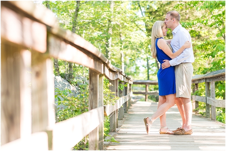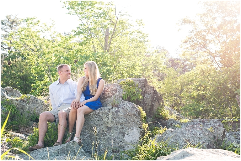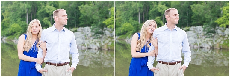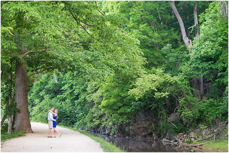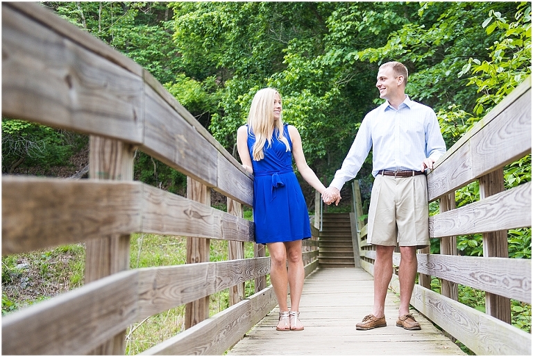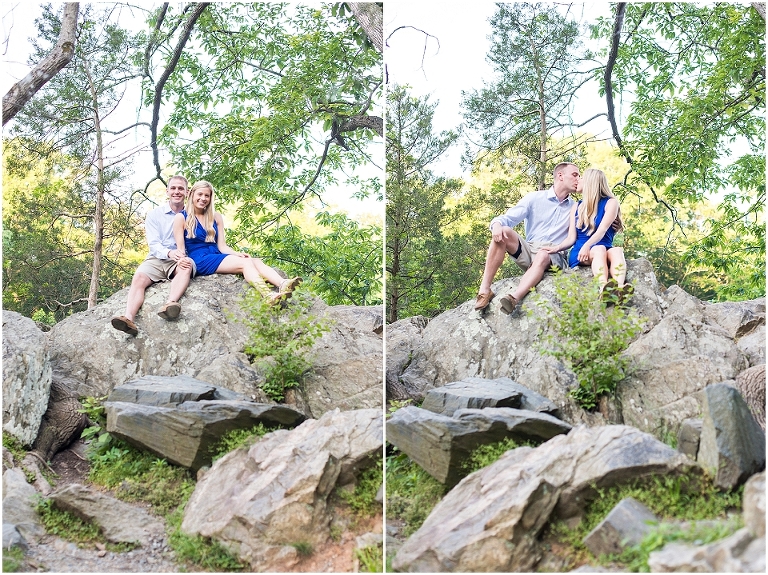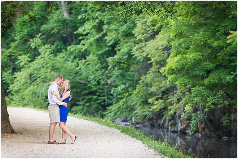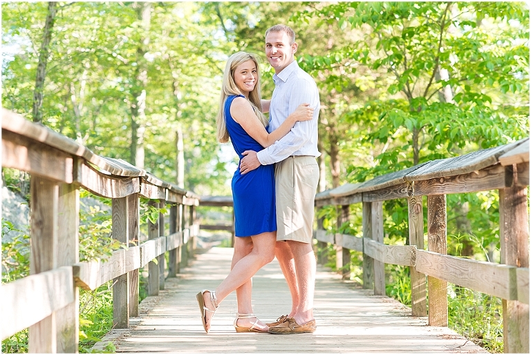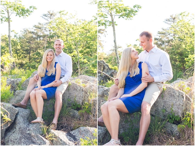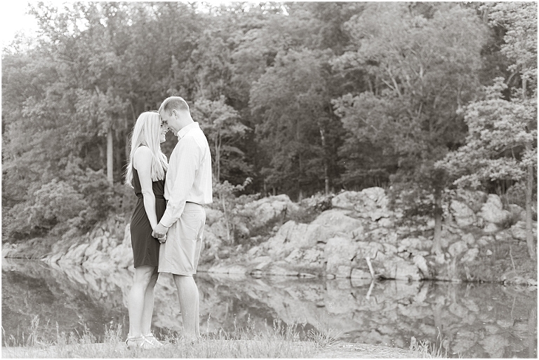 A beautiful wintertime Annapolis wedding is in store for these two sweethearts in a little less than 6 months, but we took advantage of an equally beautiful summer day to do a sunrise engagement session at Great Falls last month. I love when I arrive to sessions and the couple is super pumped for it….even at 6:30 in the morning! 🙂 Jess and Dan were excited to have me photograph them and when I asked them very first thing to climb up on some rocks they jumped right on it and were smiling the whole time. I can’t ask for better people to have in front of my camera than that. It really makes my day and lets me know that they love my photos so they trust me and my vision and whatever crazy stuff I may ask them to do….even when the bride-to-be is wearing cute sandals and a dress 🙂 And is even looking forward to walking a mile and a half to get to the falls and then a mile and a half back. Again people….in cute sandals and a dress 🙂